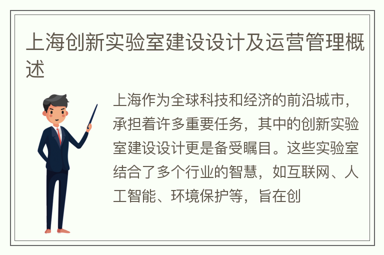 作为全球经济的重要城市,上海一直以来都在不断进行创新发展。为了加速创新步伐,壮大科技实力,上海市政府决定成立创新实验室。实验室建设需要专业的设计单位来完成,那么,上海创新实验室建设设计的负责单位是哪个呢?