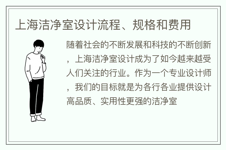 随着社会的不断发展和科技的不断创新,上海洁净室设计成为了如今越来越受人们关注的行业。作为一个专业设计师,我们的目标就是为各行各业提供设计高品质、实用性更强的洁净室,以确保工作产出流程更加清洁高效、员工的工作环境更加舒适。