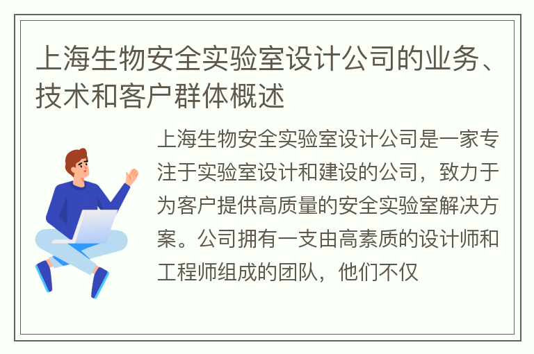 随着生物工程技术的日益发展,越来越多的实验室涉及到生物安全领域,需要设计专业的实验室。而上海生物安全实验室设计公司作为一家专业从事实验室设计的企业,受到过越来越多的关注。那么,该公司的客户群体究竟是哪些呢?