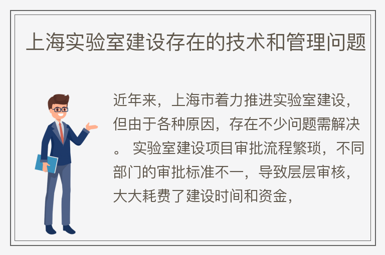 随着科技的不断进步,实验室建设成为了现代社会重要的一部分。而在上海,众多的实验室如雨后春笋般建设起来,但是在建设实验室的过程中,难免会遇到许多技术上的问题。本文将会详细阐述目前上海实验室建设存在的问题,并分析原因,同时提出解决方案。
