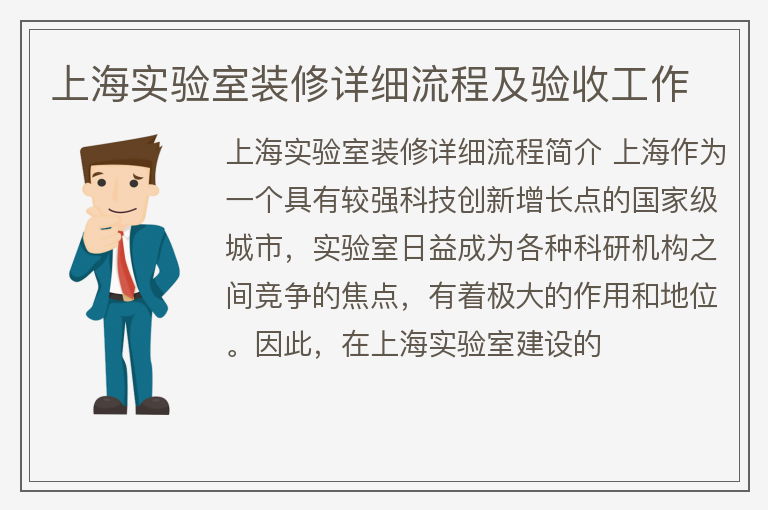 综上所述,上海实验室的装修流程任务至关重要,直接决定了实验室的健康规范运转。一个合理的装修流程将关注于实验办具体的行业特性和办公场所的需求,切合我们的各种实验指标要求,最终流程的设计才能达到效果,解决实验室装修中的重要问题。