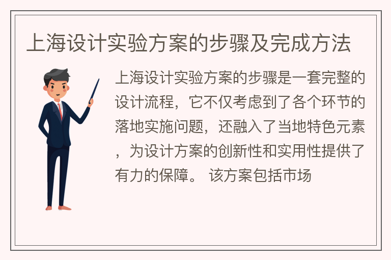 上海设计实验方案的步骤是一套完整的设计流程,它不仅考虑到了各个环节的落地实施问题,还融入了当地特色元素,为设计方案的创新性和实用性提供了有力的保障。