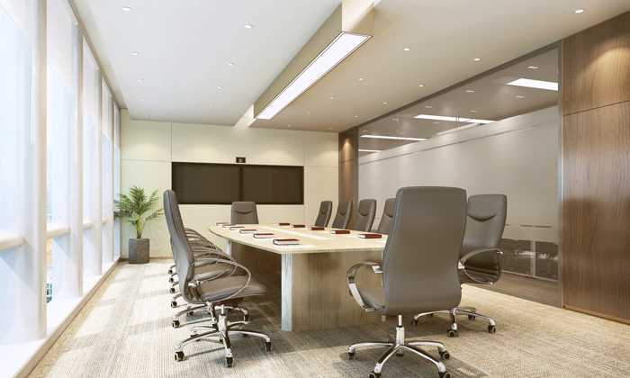 会议室是公司进行谈判和促进工作的重要场所,会议室的装饰应营造适合会议的氛围,并且装饰风格应与公司的整体气质保持一致。 会议室的大小应根据会议室的具体用途和与会人数确定。 如果平均参加人数少于30人,则可以选择圆形或椭圆形的大型会议桌。 目前,在成都办公室装修中,公司的许多大型会议室还具有宴会厅的功能。