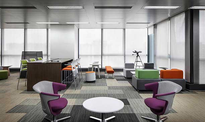 2、开放式员工办公室是由多个员工和管理人员共同使用的,这种办公室的模式是不规则的。在实际工作中,办公室应根据不同职业的工作流程和要求,安排整个办公区域,使员工相互配合,工作关系友好。