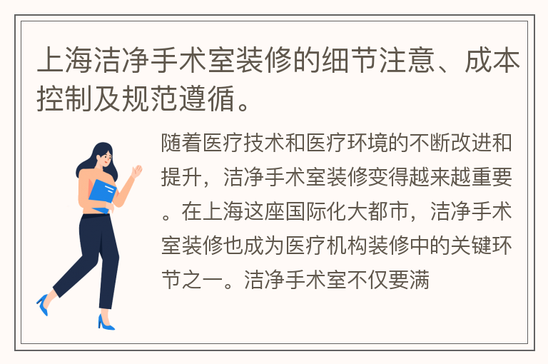 上海洁净手术室装修的细节注意、成本控制及规范遵循。