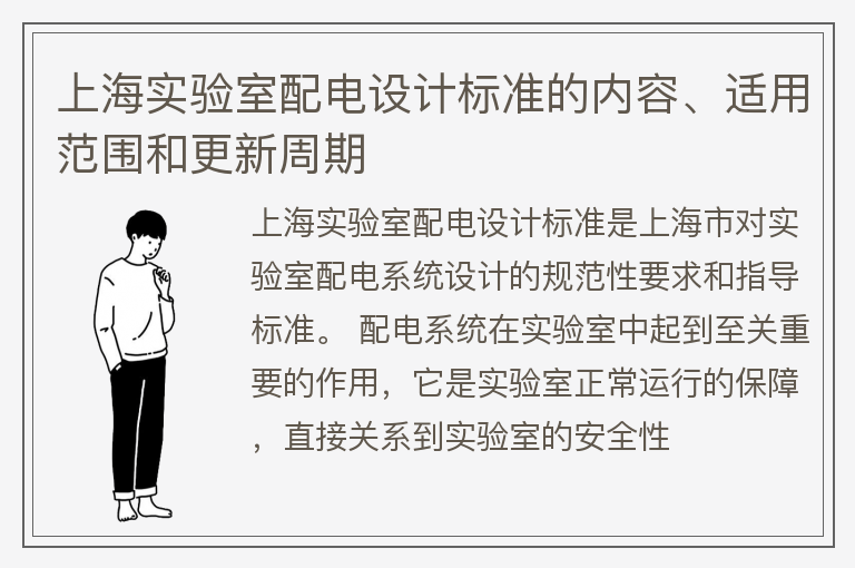 上海实验室配电设计标准的内容、适用范围和更新周期