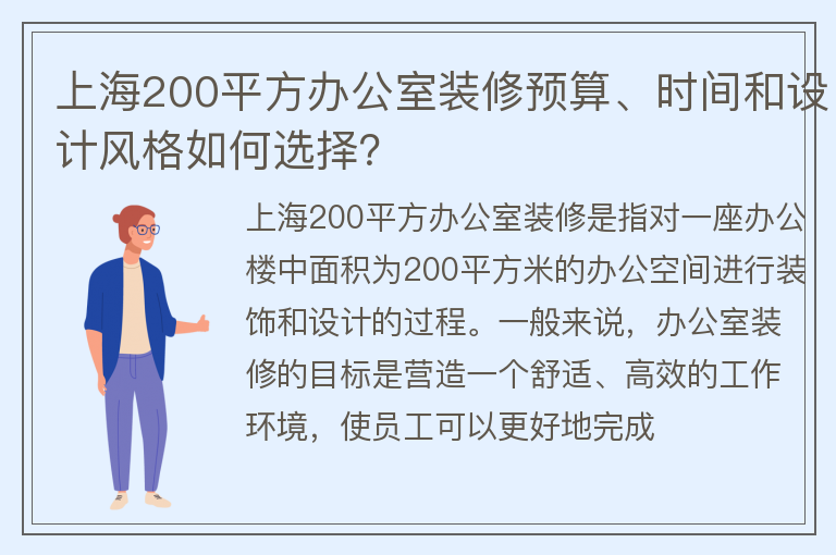上海200平方办公室装修预算、时间和设计风格如何选择?