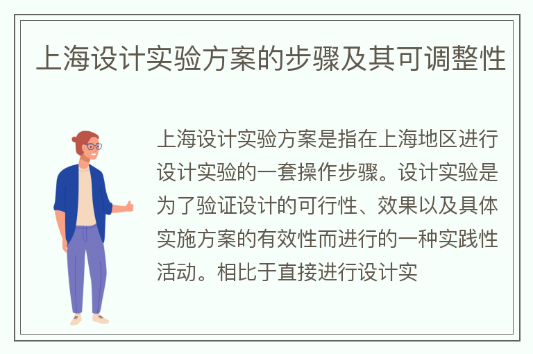 上海设计实验方案是指在上海地区进行设计实验的一套操作步骤。设计实验是为了验证设计的可行性、效果以及具体实施方案的有效性而进行的一种实践性活动。相比于直接进行设计实......【点击详情】