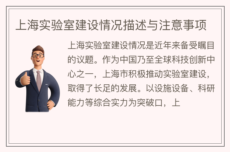 上海实验室建设情况是近年来备受瞩目的议题。作为中国乃至全球科技创新中心之一,上海市积极推动实验室建设,取得了长足的发展。以设施设备、科研能力等综合实力为突破口,上......【点击详情】