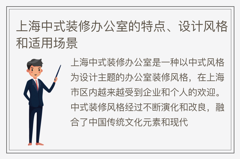 上海中式装修办公室是一种以中式风格为设计主题的办公室装修风格,在上海市区内越来越受到企业和个人的欢迎。中式装修风格经过不断演化和改良,融合了中国传统文化元素和现代......【点击详情】