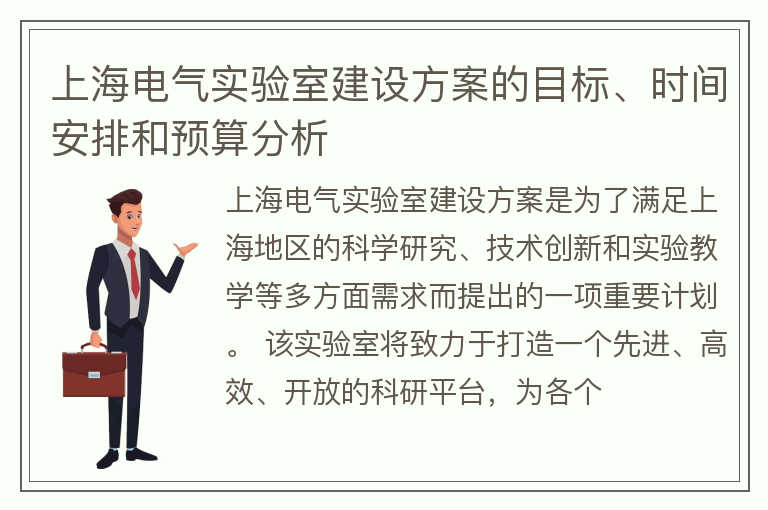 上海电气实验室建设方案的目标、时间安排和预算分析