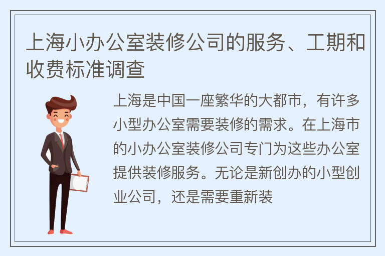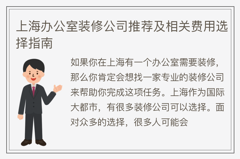 如果你在上海有一个办公室需要装修,那么你肯定会想找一家专业的装修公司来帮助你完成这项任务。上海作为国际大都市,有很多装修公司可以选择。面对众多的选择,很多人可能会......【点击详情】