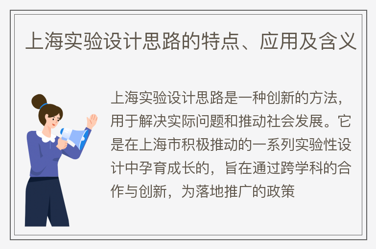 上海实验设计思路是一种创新的方法,用于解决实际问题和推动社会发展。它是在上海市积极推动的一系列实验性设计中孕育成长的,旨在通过跨学科的合作与创新,为落地推广的政策......【点击详情】