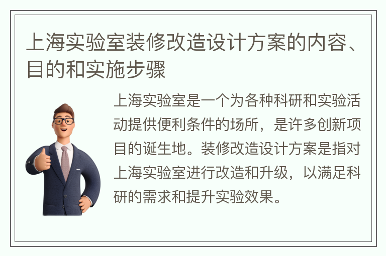 上海实验室装修改造设计方案的内容、目的和实施步骤