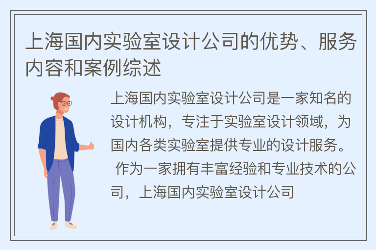 上海国内实验室设计公司的优势、服务内容和案例综述