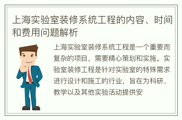 上海实验室装修系统工程的内容、时间和费用问题解析