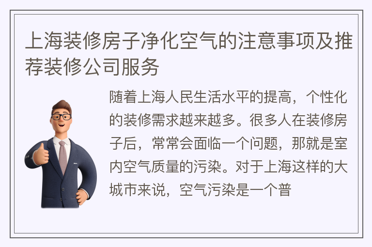 上海装修房子净化空气的注意事项及推荐装修公司服务