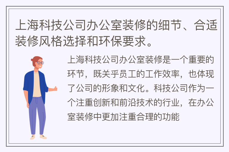 上海科技公司办公室装修的细节、合适装修风格选择和环保要求。