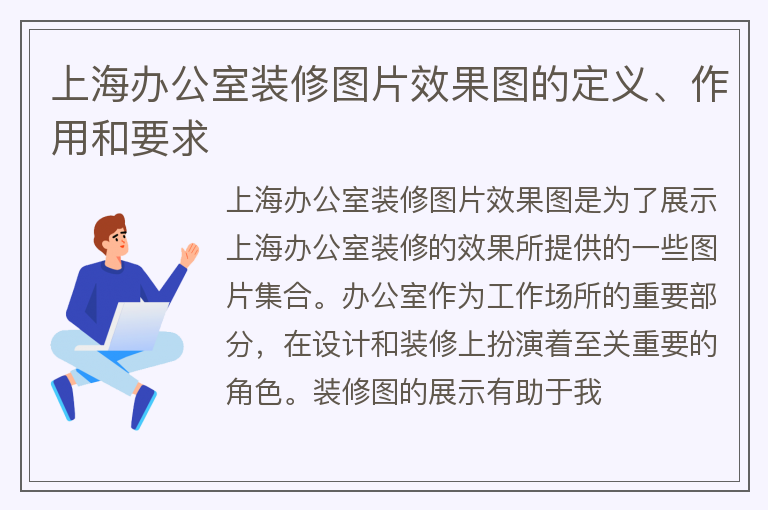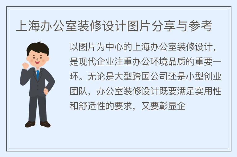上海办公室装修图片效果图是为了展示上海办公室装修的效果所提供的一些图片集合。办公室作为工作场所的重要部分,在设计和装修上扮演着至关重要的角色。装修图的展示有助于我......【点击详情】