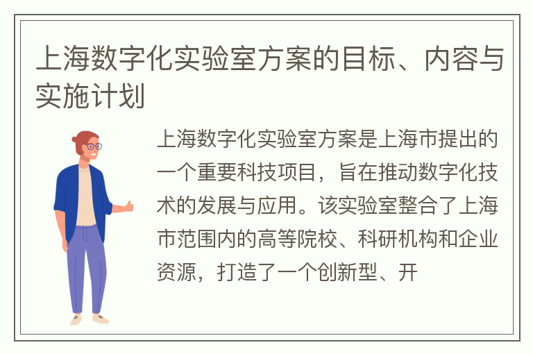 上海数字化实验室方案是上海市提出的一个重要科技项目,旨在推动数字化技术的发展与应用。该实验室整合了上海市范围内的高等院校、科研机构和企业资源,打造了一个创新型、开......【点击详情】