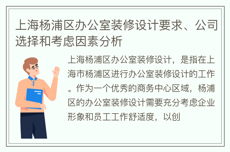 上海杨浦区办公室装修设计要求、公司选择和考虑因素分析