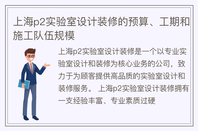 上海p2实验室设计装修的预算、工期和施工队伍规模