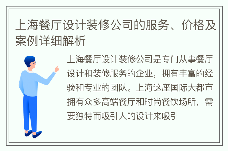 上海餐厅设计装修公司的服务、价格及案例详细解析