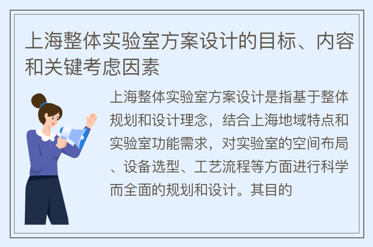 上海整体实验室方案设计的目标、内容和关键考虑因素