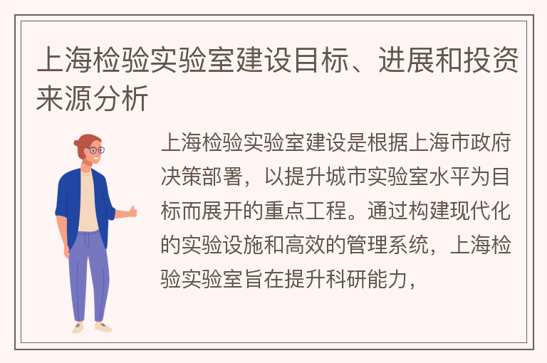 上海检验实验室建设是根据上海市政府决策部署,以提升城市实验室水平为目标而展开的重点工程。通过构建现代化的实验设施和高效的管理系统,上海检验实验室旨在提升科研能力,......【点击详情】