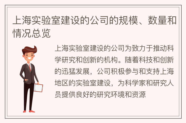 上海实验室建设的公司为致力于推动科学研究和创新的机构。随着科技和创新的迅猛发展,公司积极参与和支持上海地区的实验室建设,为科学家和研究人员提供良好的研究环境和资源......【点击详情】